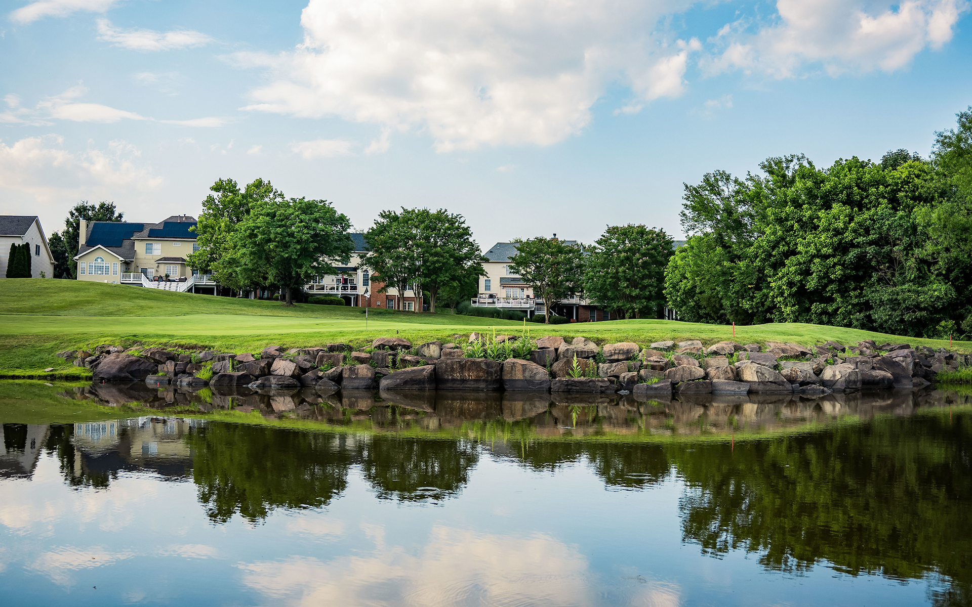 Belmont is home to an 18-hole Arnold Palmer Signature golf course, nominated in its inaugural year as Best New Private Golf Course by Golf Digest. Measuring 7,212 yards from the back tees, the natural elevation changes, tree-lined fairways and vast amount of wetland hazards challenge all levels of golfers. As a result, Belmont was rated the third most challenging golf course in Virginia by the USGA.