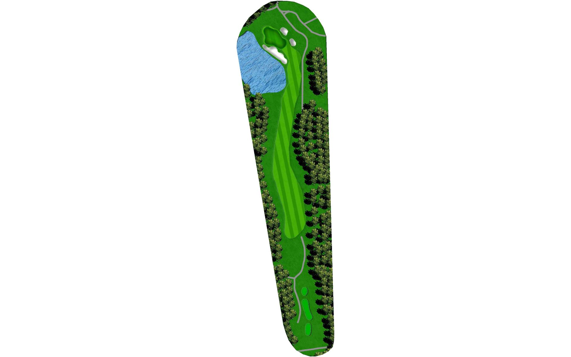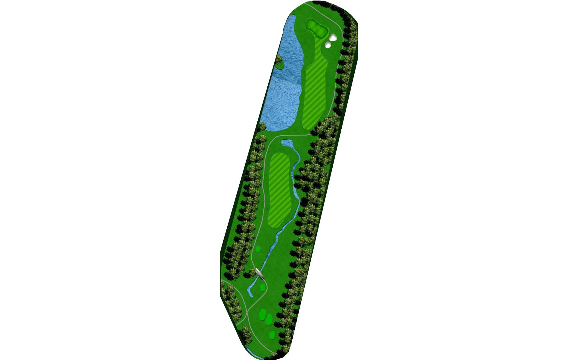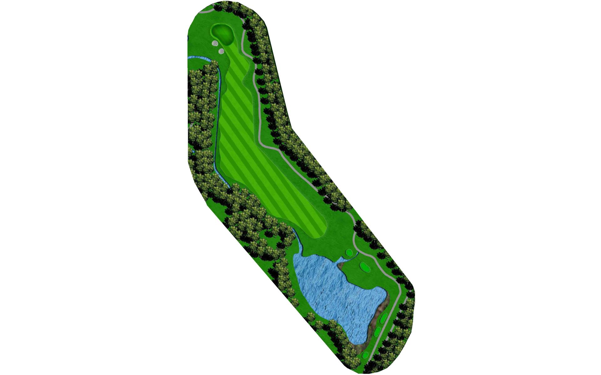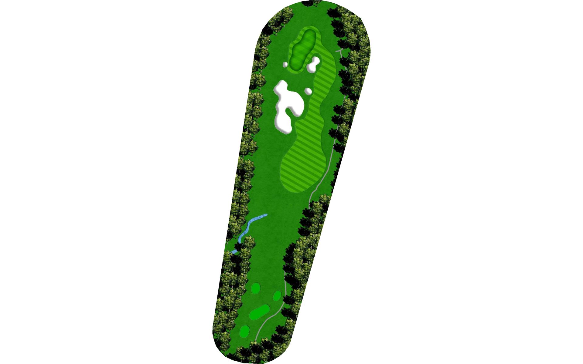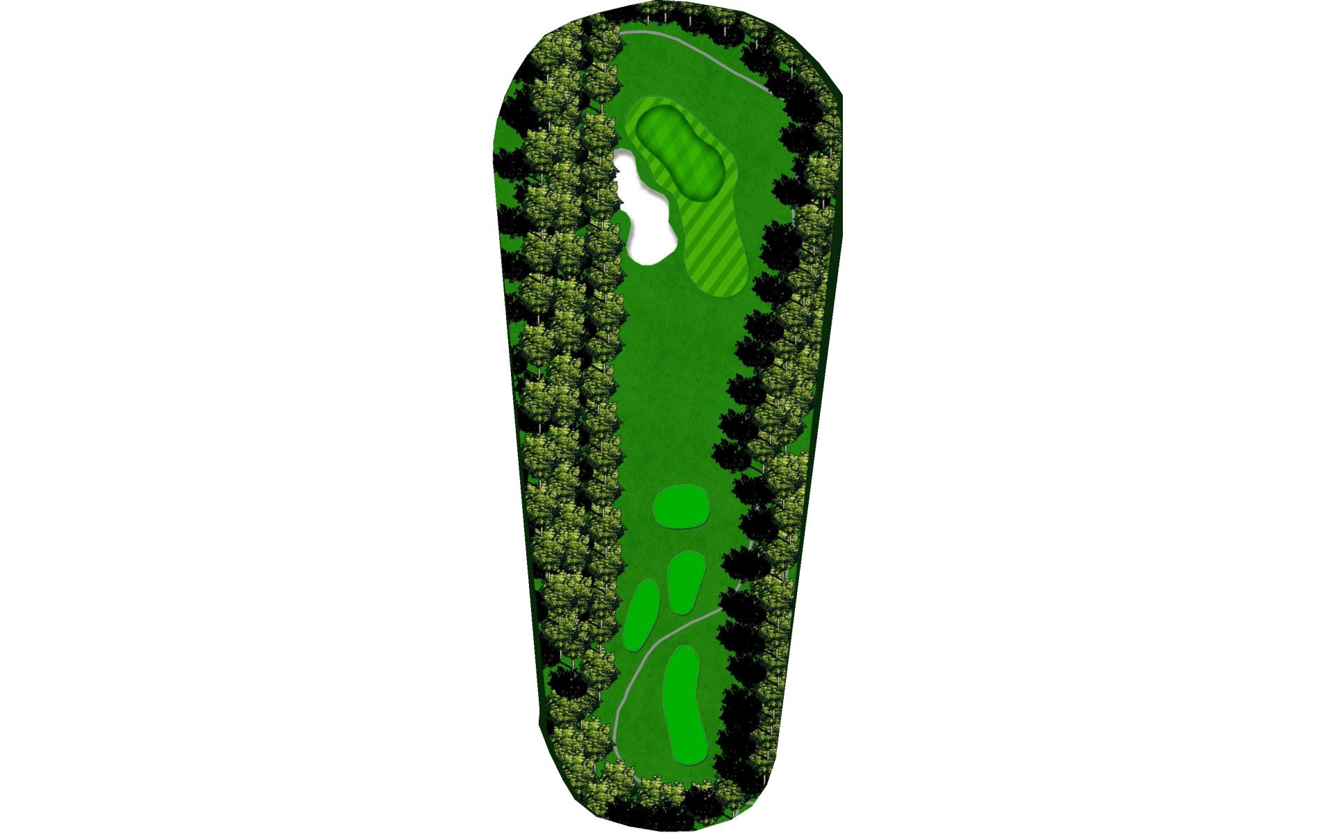 A final challenge was left for the eighteenth hole. It is similar in character to the thirteenth where the player can, after a successful te…