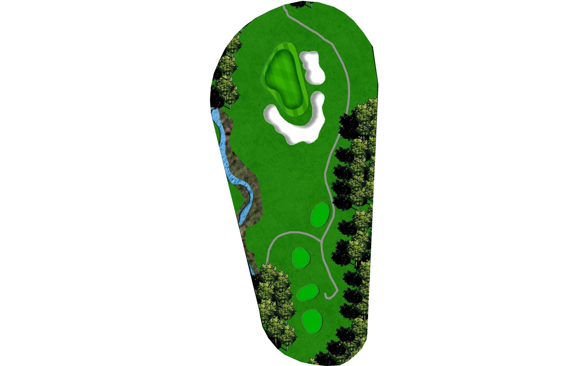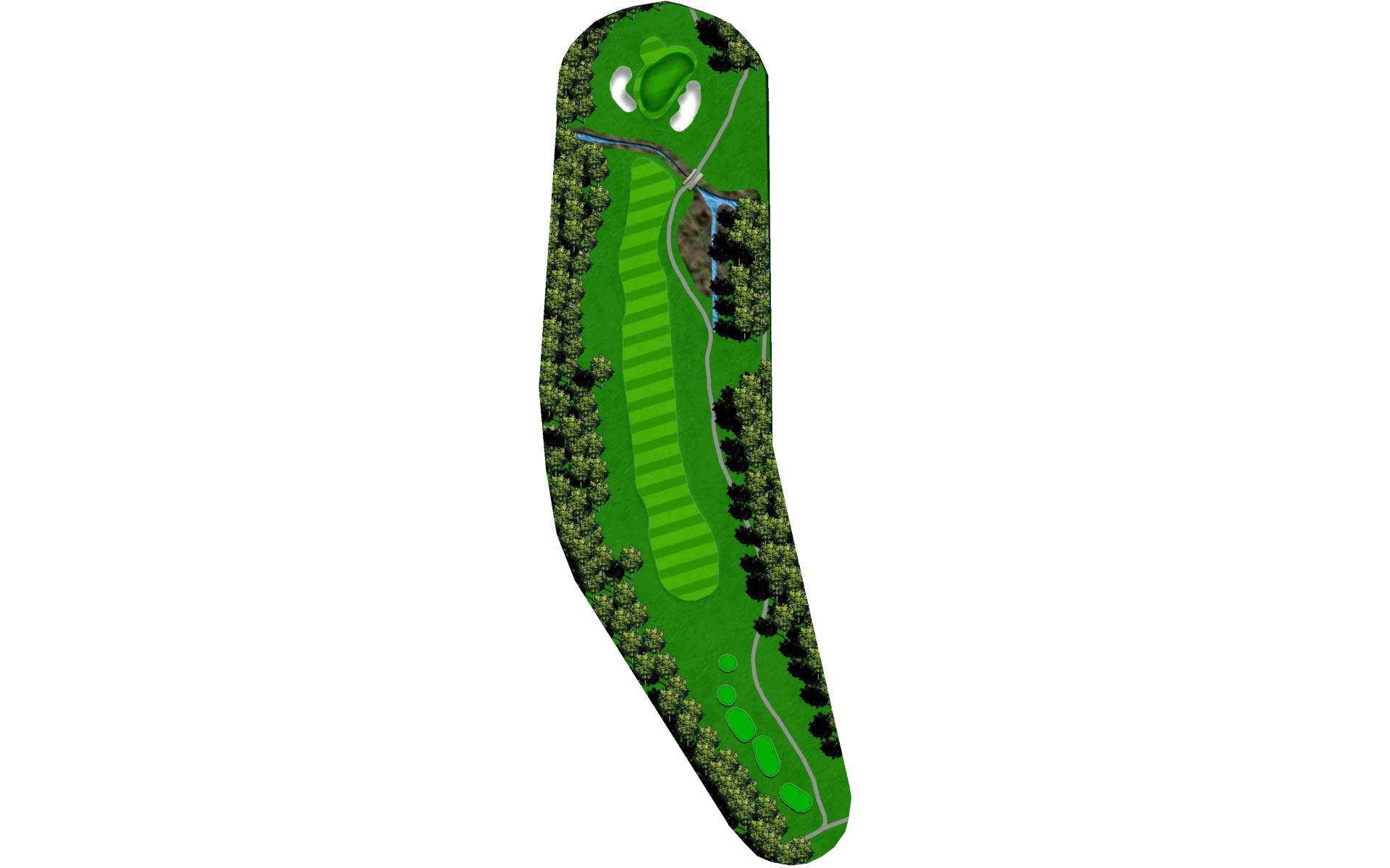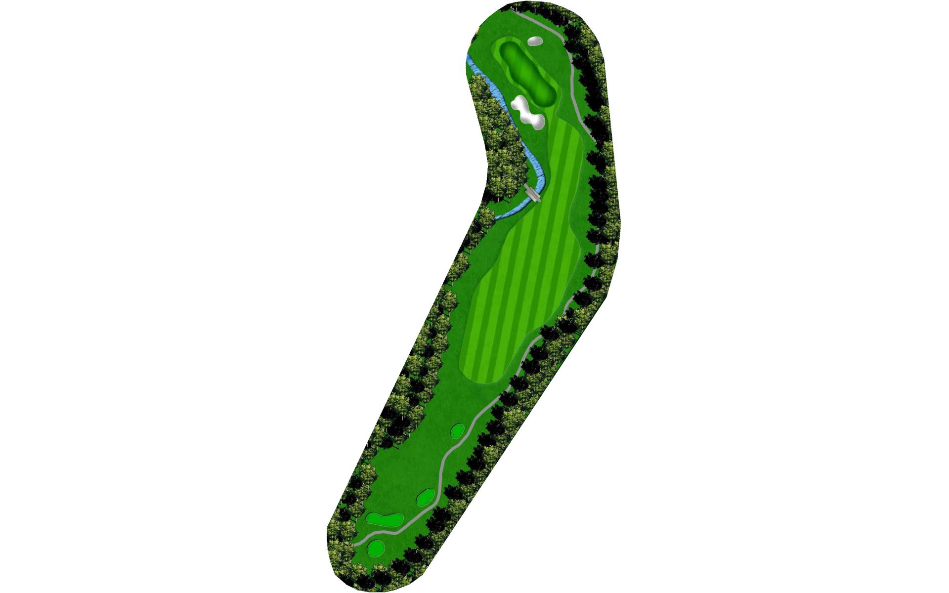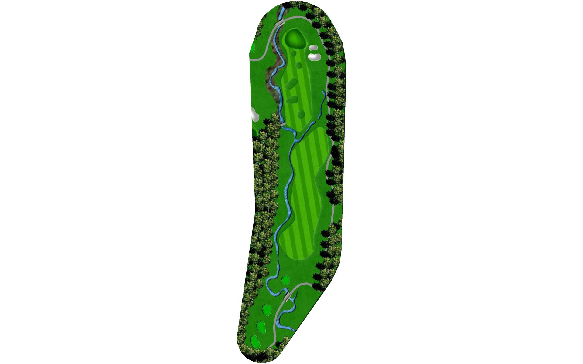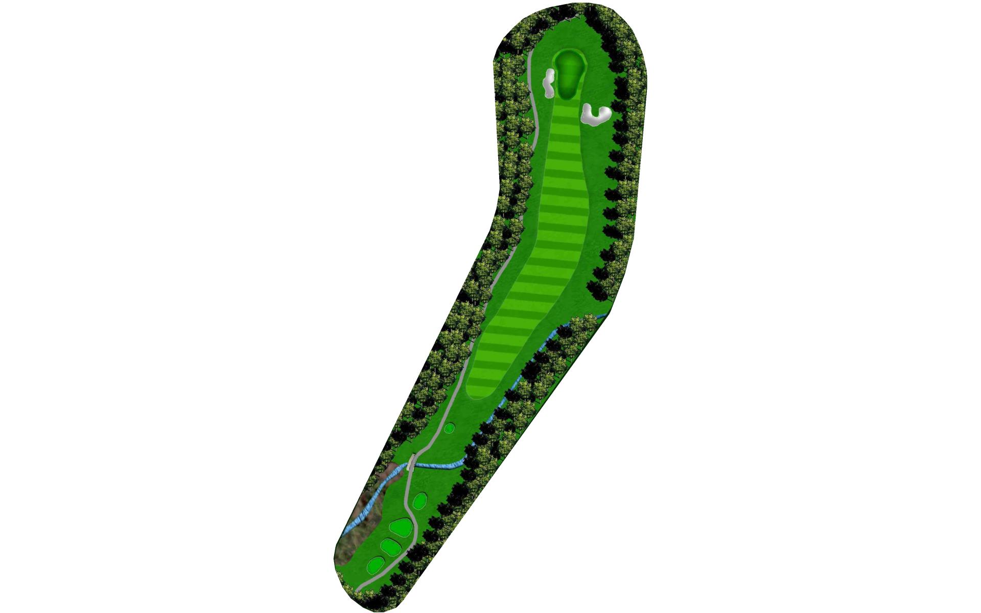 A final challenge was left for the eighteenth hole. It is similar in character to the thirteenth where the player can, after a successful te…