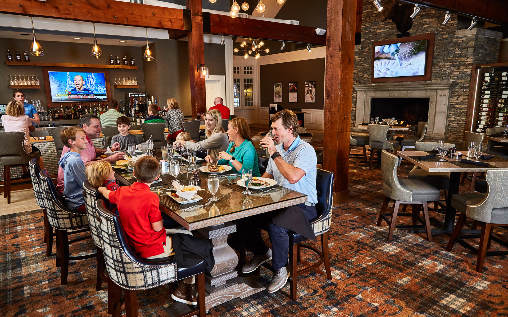 Our new restaurant, The Nest, at Eagle Watch is open daily for breakfast and lunch. The Club also hosts themed dining nights throughout the year. Members and guests can dine near the beautiful stone fireplace in the main dining room or enjoy the view from the garden room. The Club has an extensive menu of American cuisine that makes for a hearty beginning or finish to a round of golf, and the full-service clubhouse bar features beer, wine and liquor.