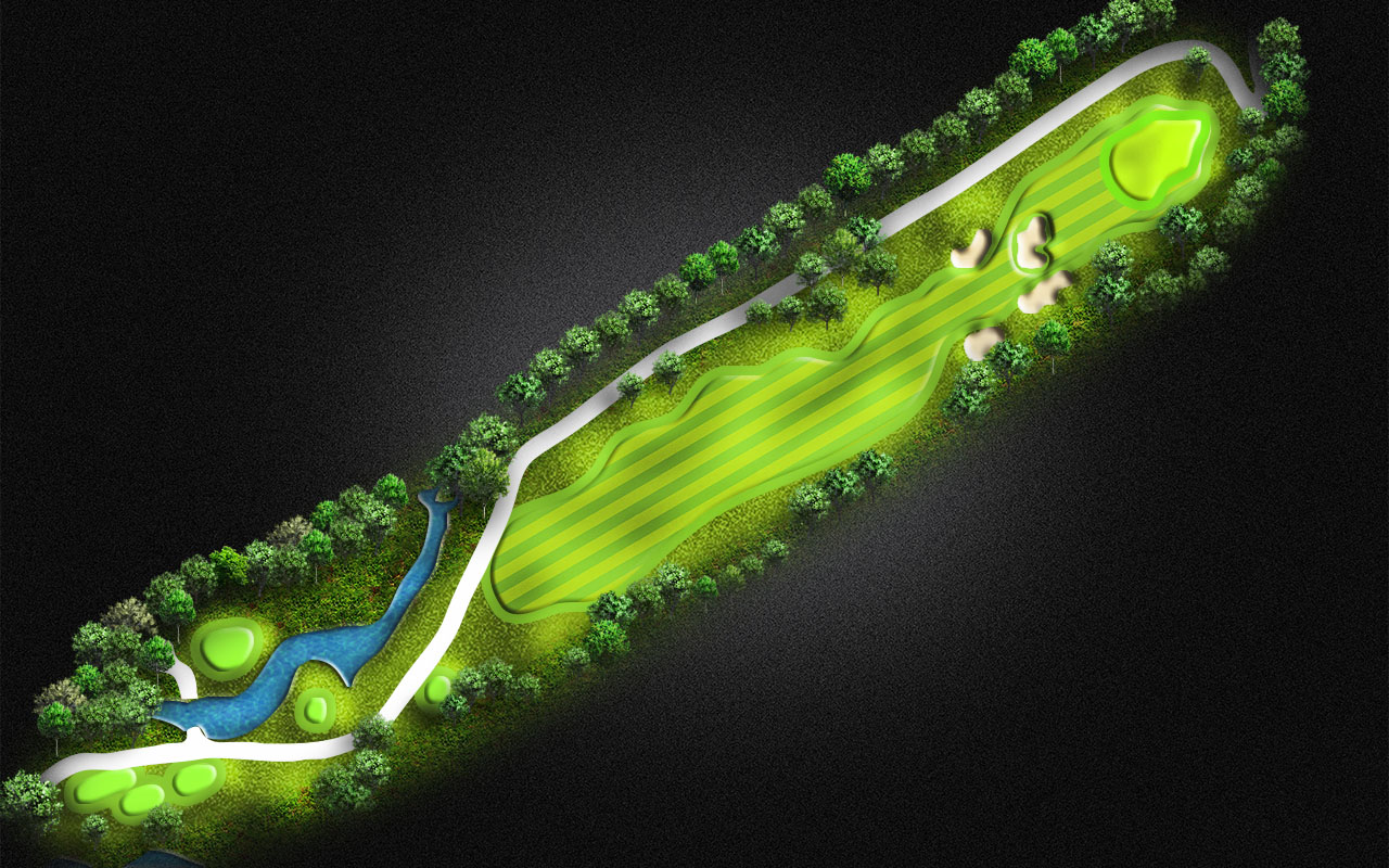 Usual wind will be right to left on this Par 4. Stay away from the creek on the left.