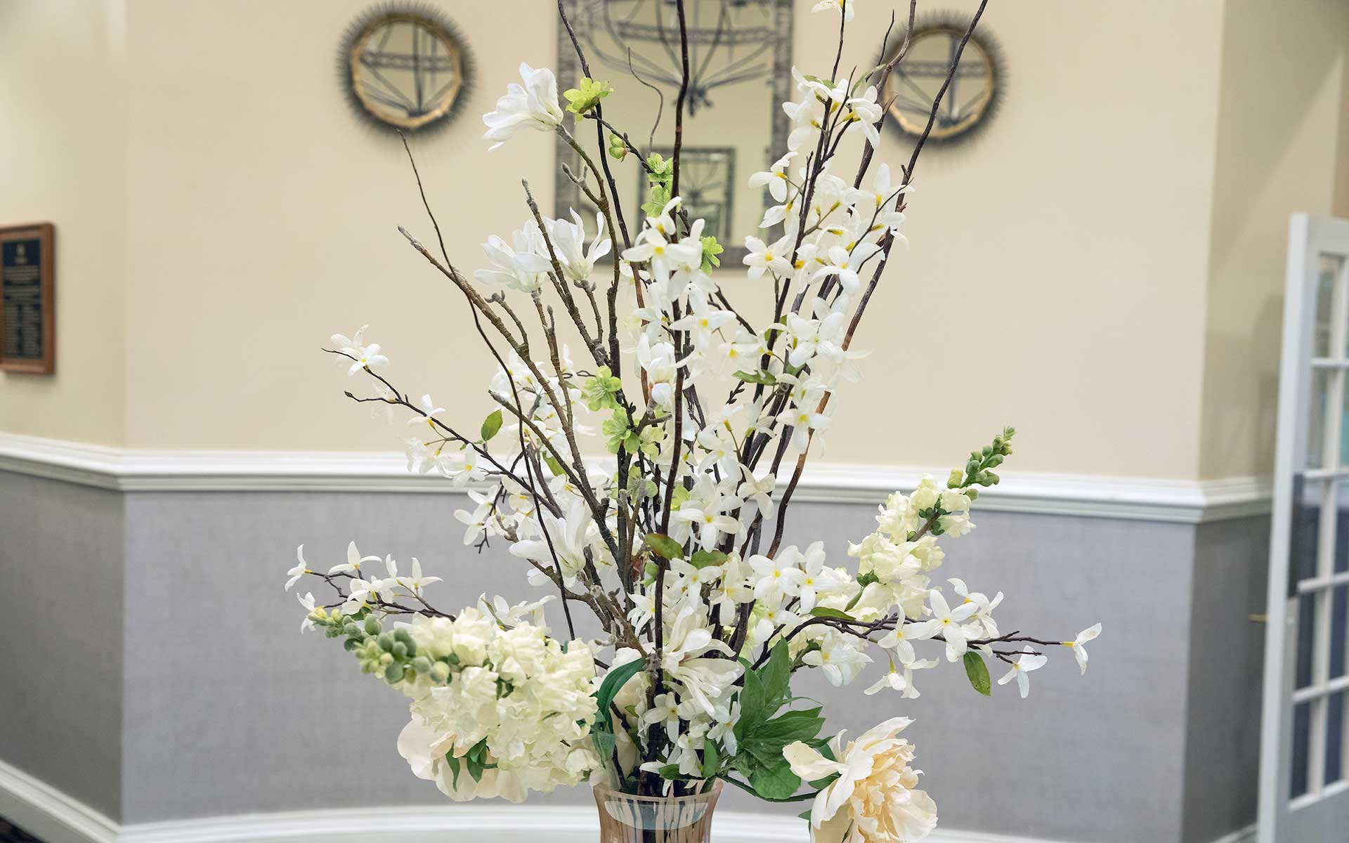 The Library can accommodate up to 30 for a sit-down meeting or reception. The Library has a built-in screen to be used with our projector system. Groups over 30 may be accommodated in this space for cocktail-style receptions.