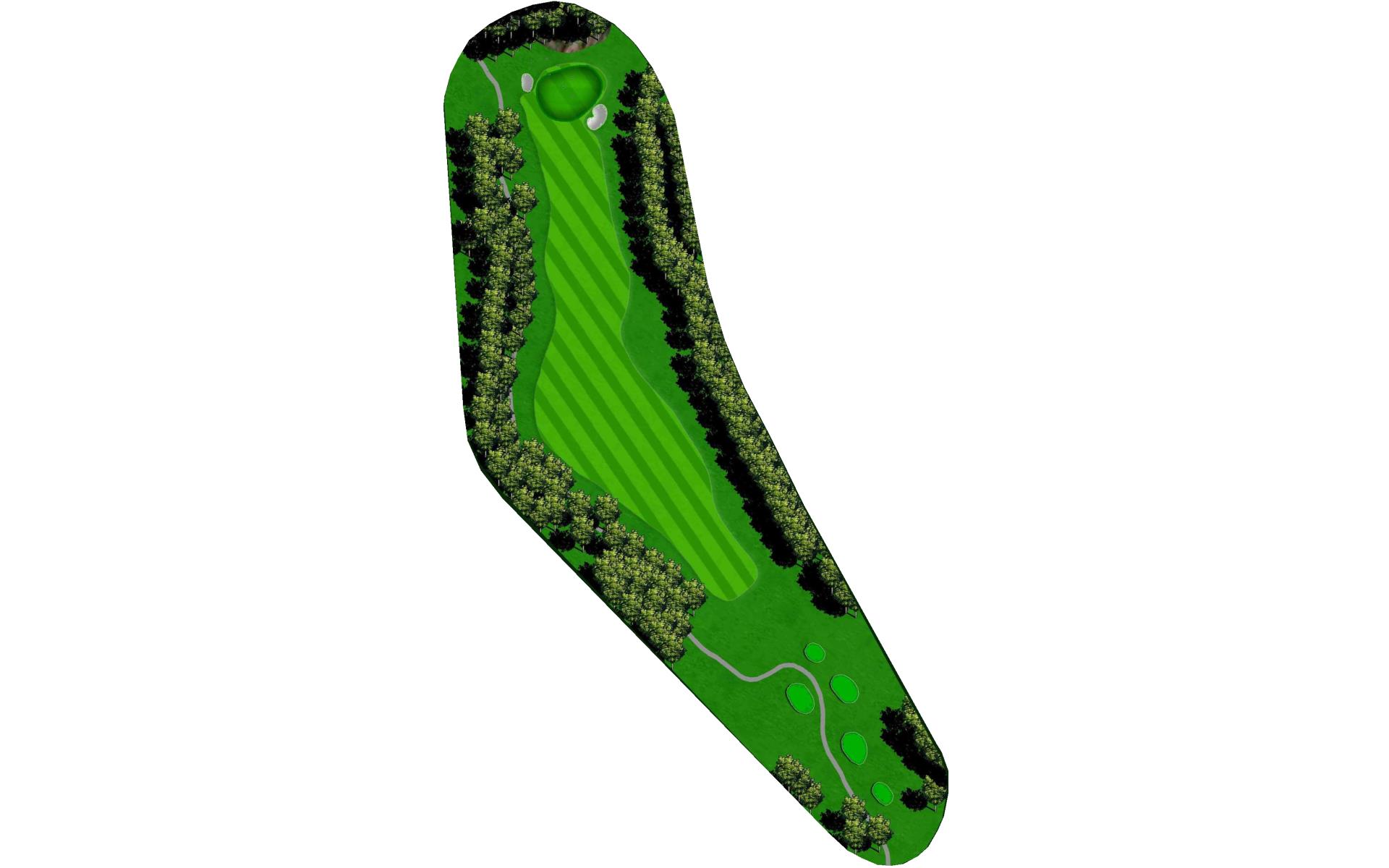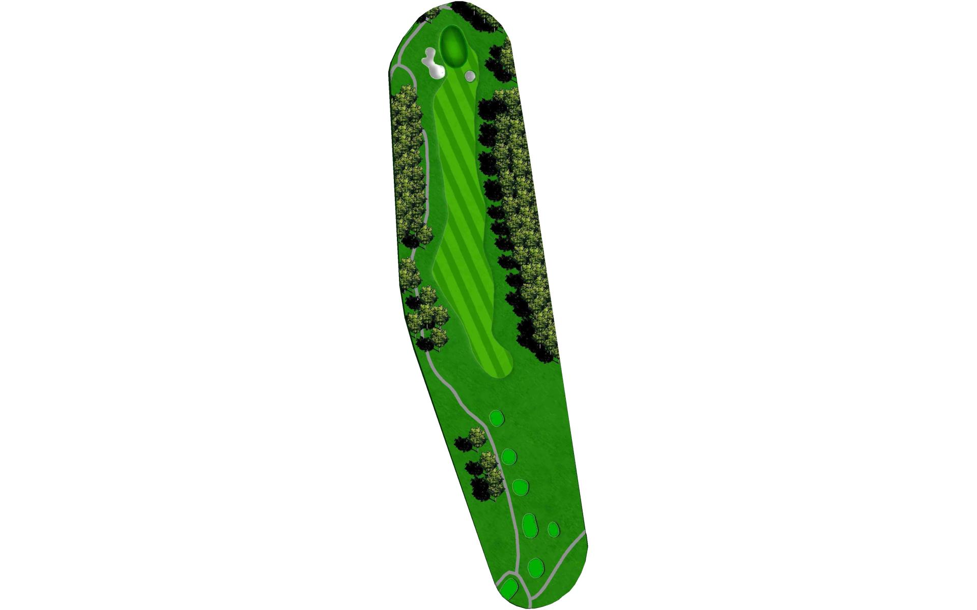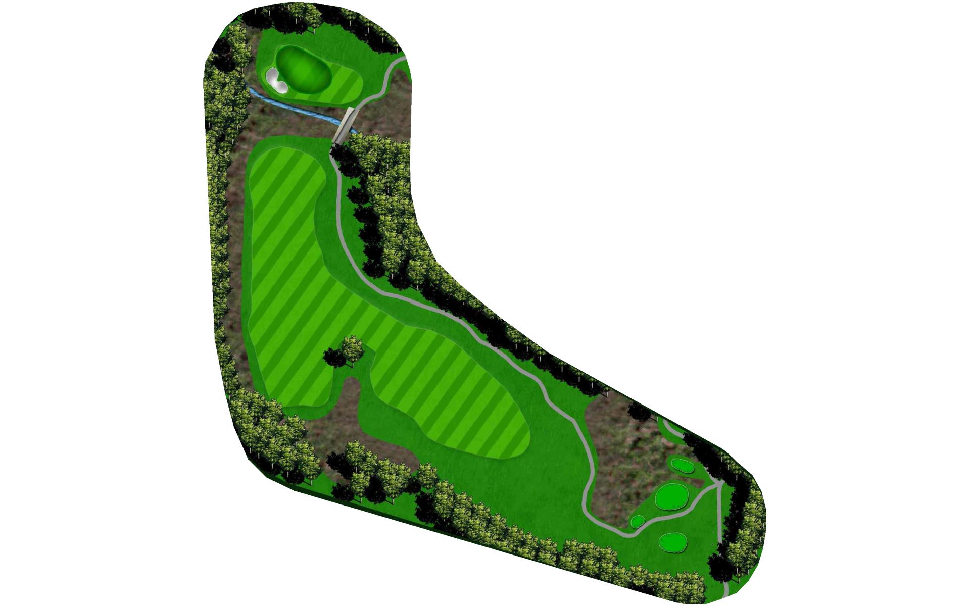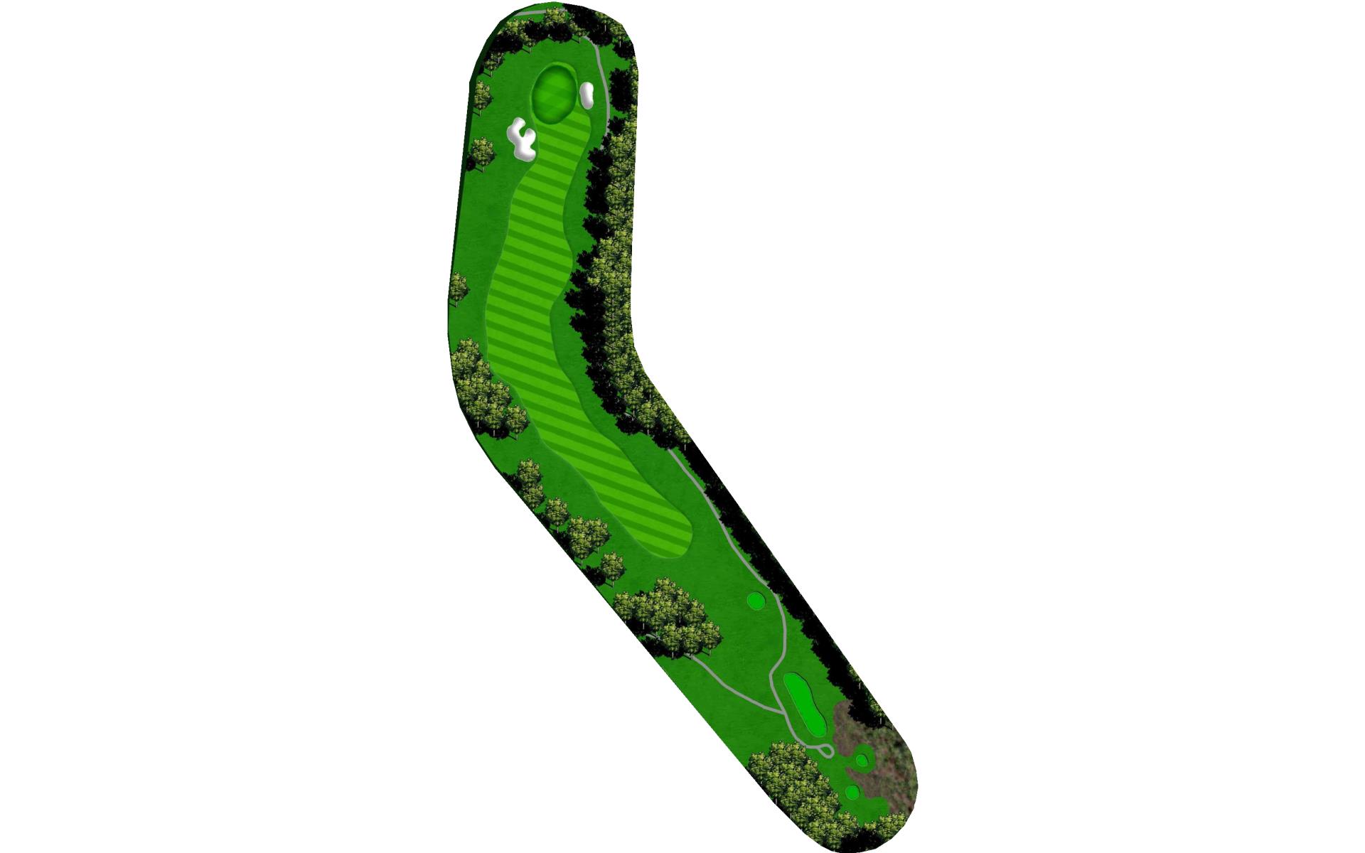 This is the only dogleg left Par 4 on the course. Keep your tee shot right and your second shot left. The greens right side is well protected by a deep creek.
