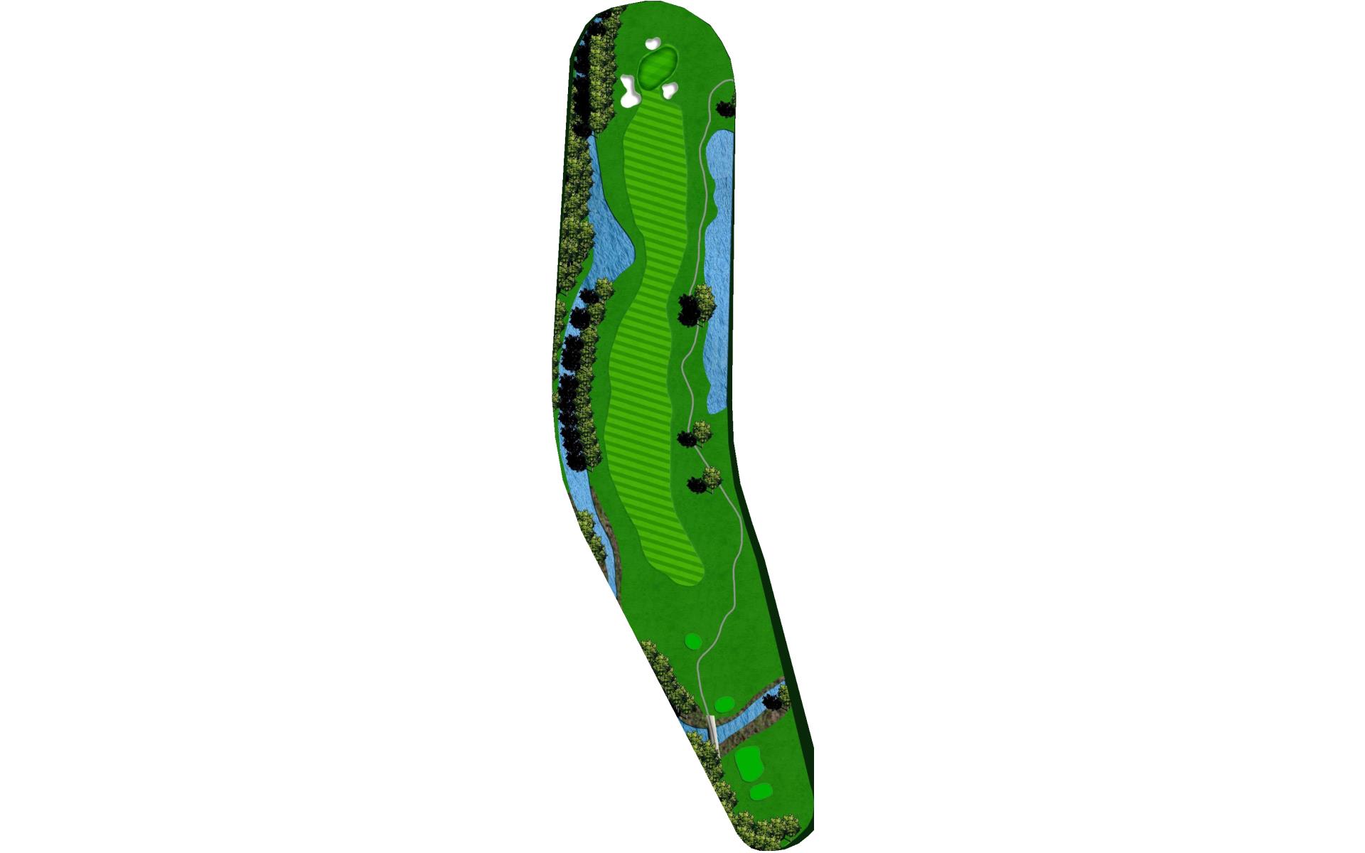 This long Par 4 is no push-over. Hitting a big tee shot here will be helpful. Make sure your second shot is accurate because your target is the smallest green on the course.