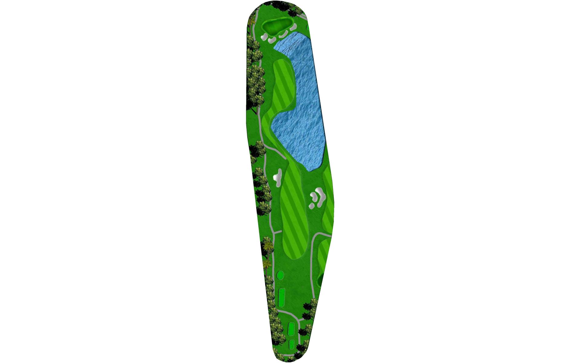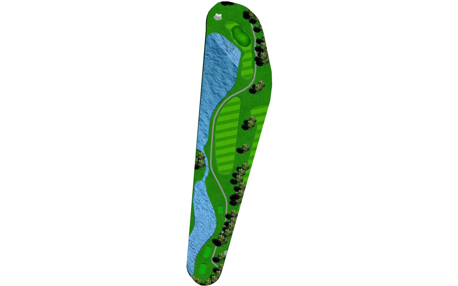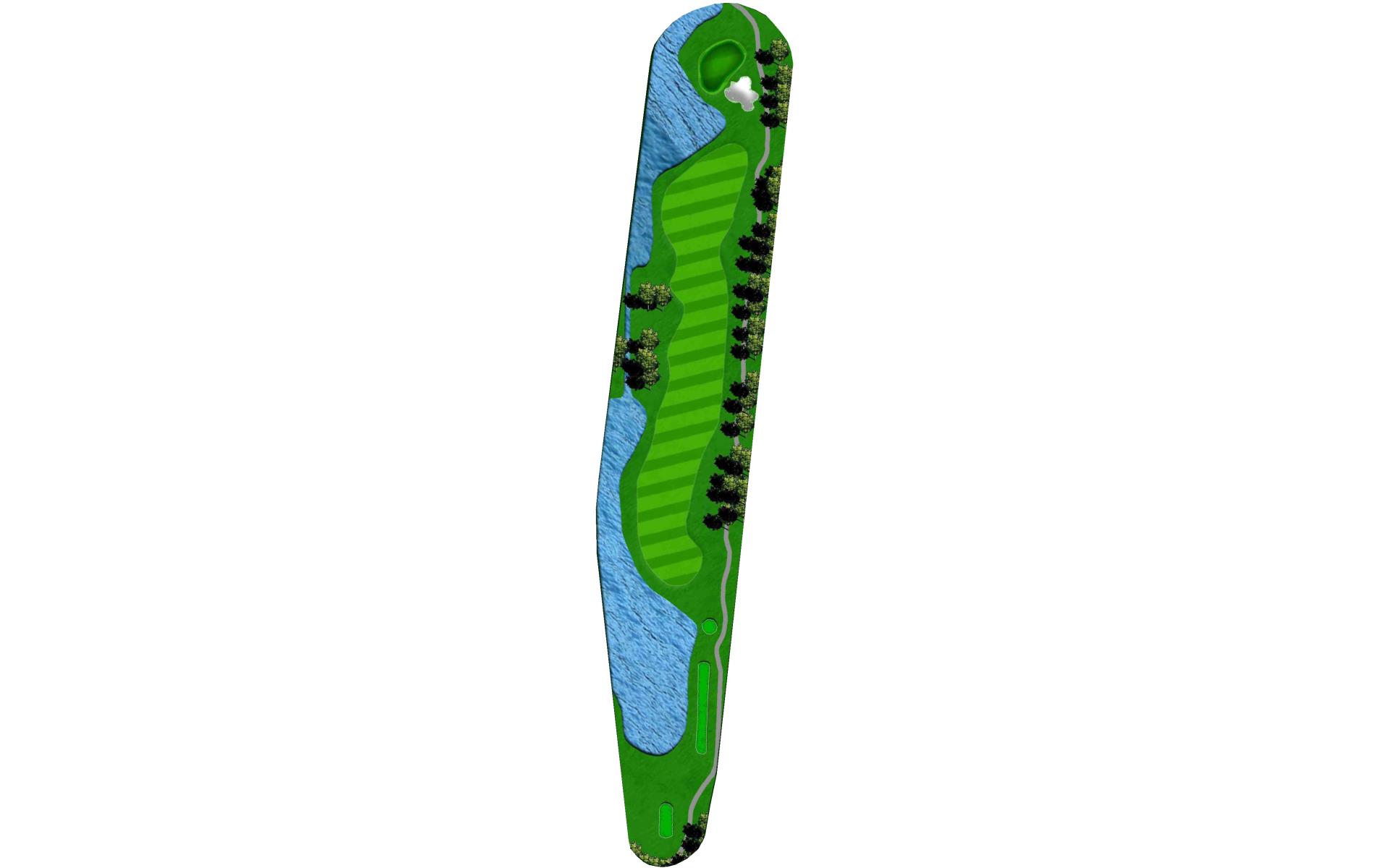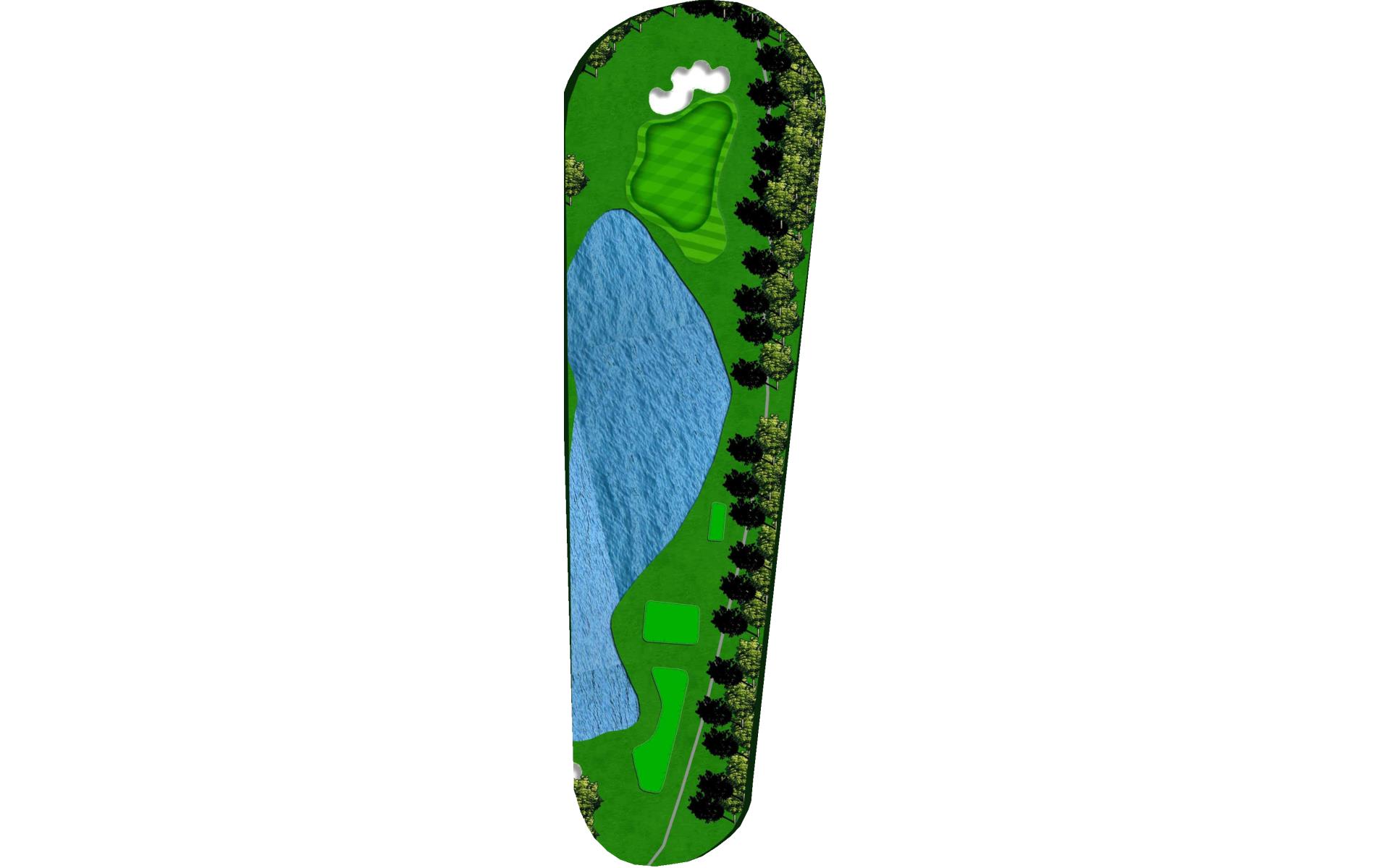 "Eagle's Dare" is the only par 5 that does not force players to layup off the tee and is the longest hole on the golf course. Water surrounds this elevated two-tiered green on 3 sides, out-of-bounds runs down the other, and a large greenside bunker sits just short and to the right. Players should think carefully before taking it on.