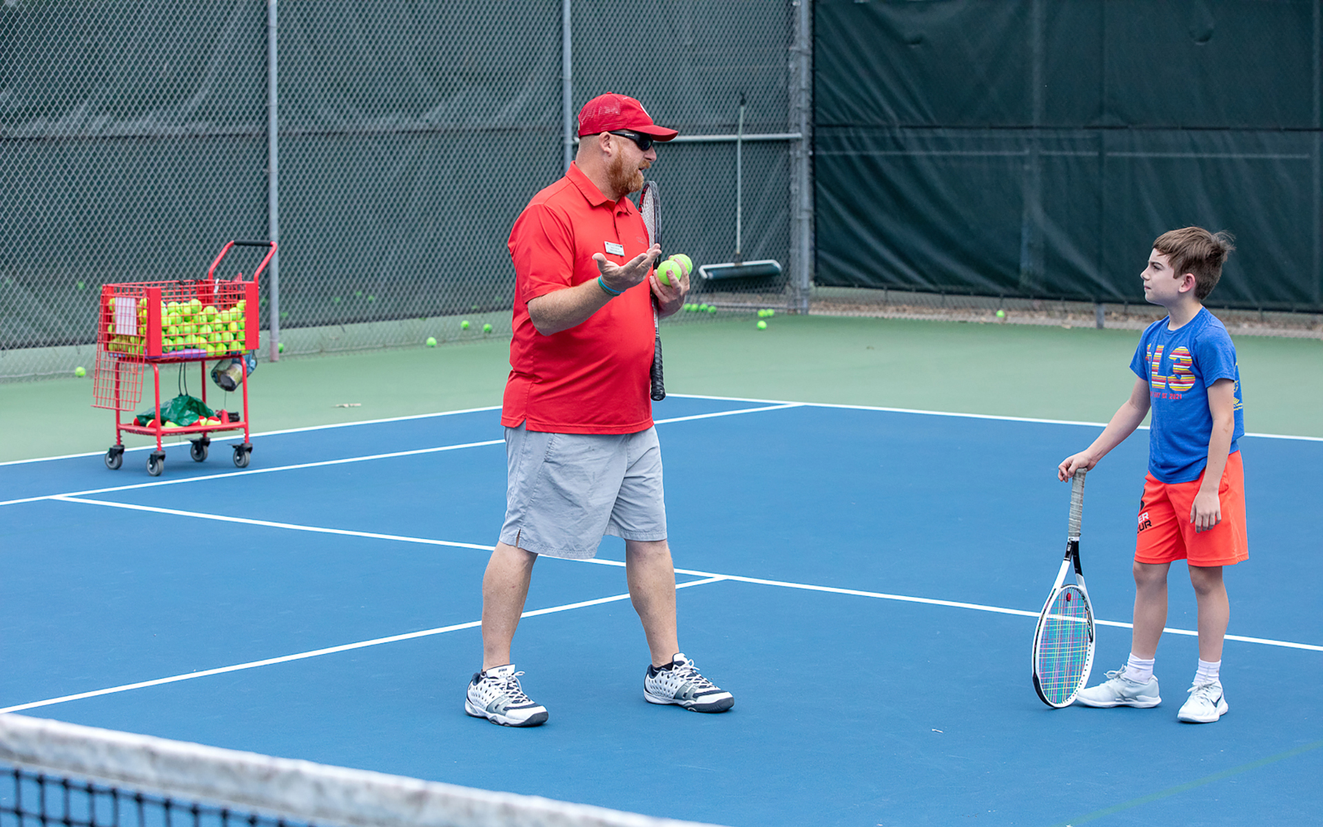 This class is for our young players who are already developing rally skills. This class has limited space and does require professional approval. We will introduce the other basics through live ball, point play, and match play. Players in this class should utilize the red ball match play days and Club tournaments for continued improvement.