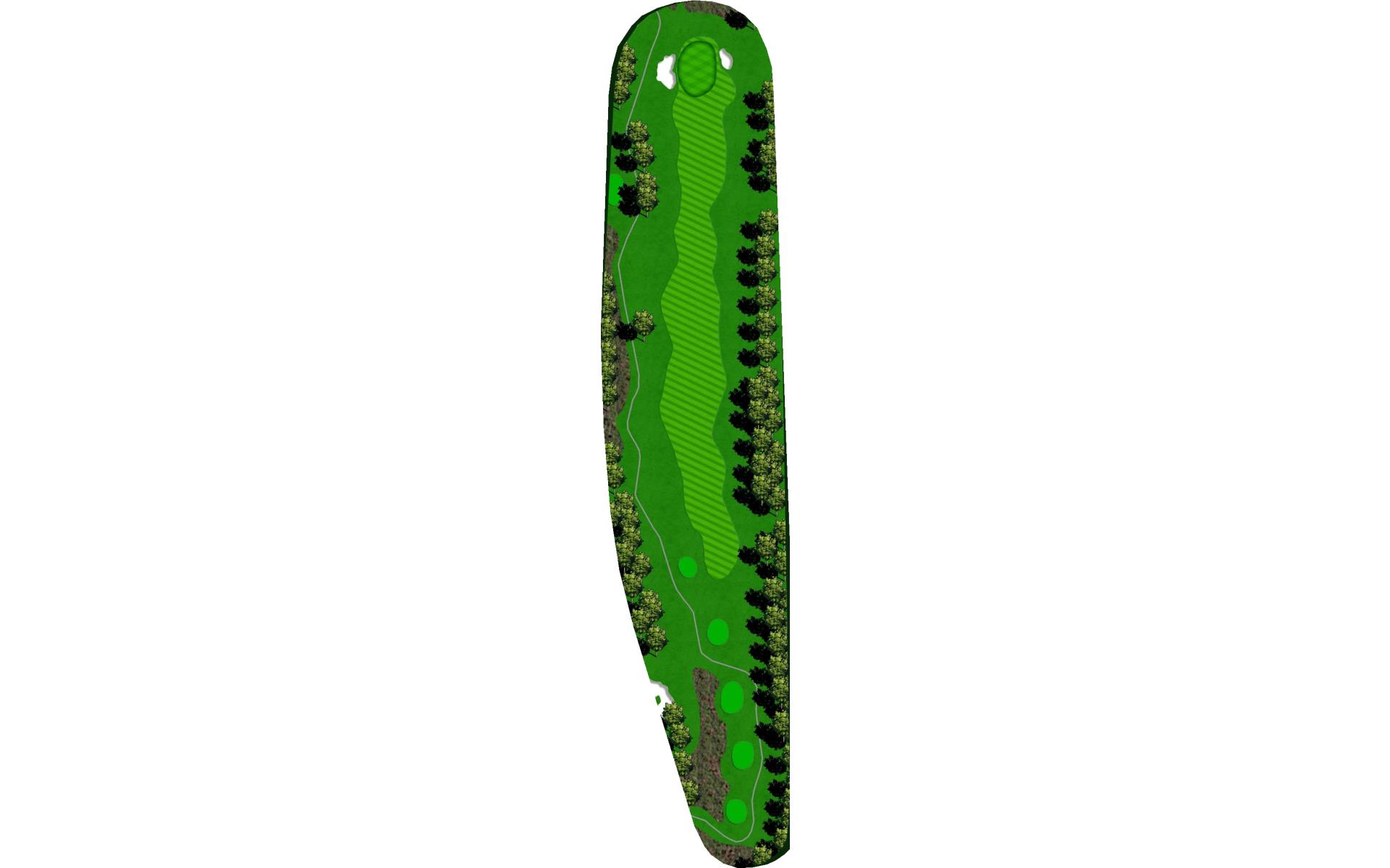 The green on this long, downhill par 3 is tucked into a hillside that slopes to the right. Trees shadow it’s left side. There is real trou…
