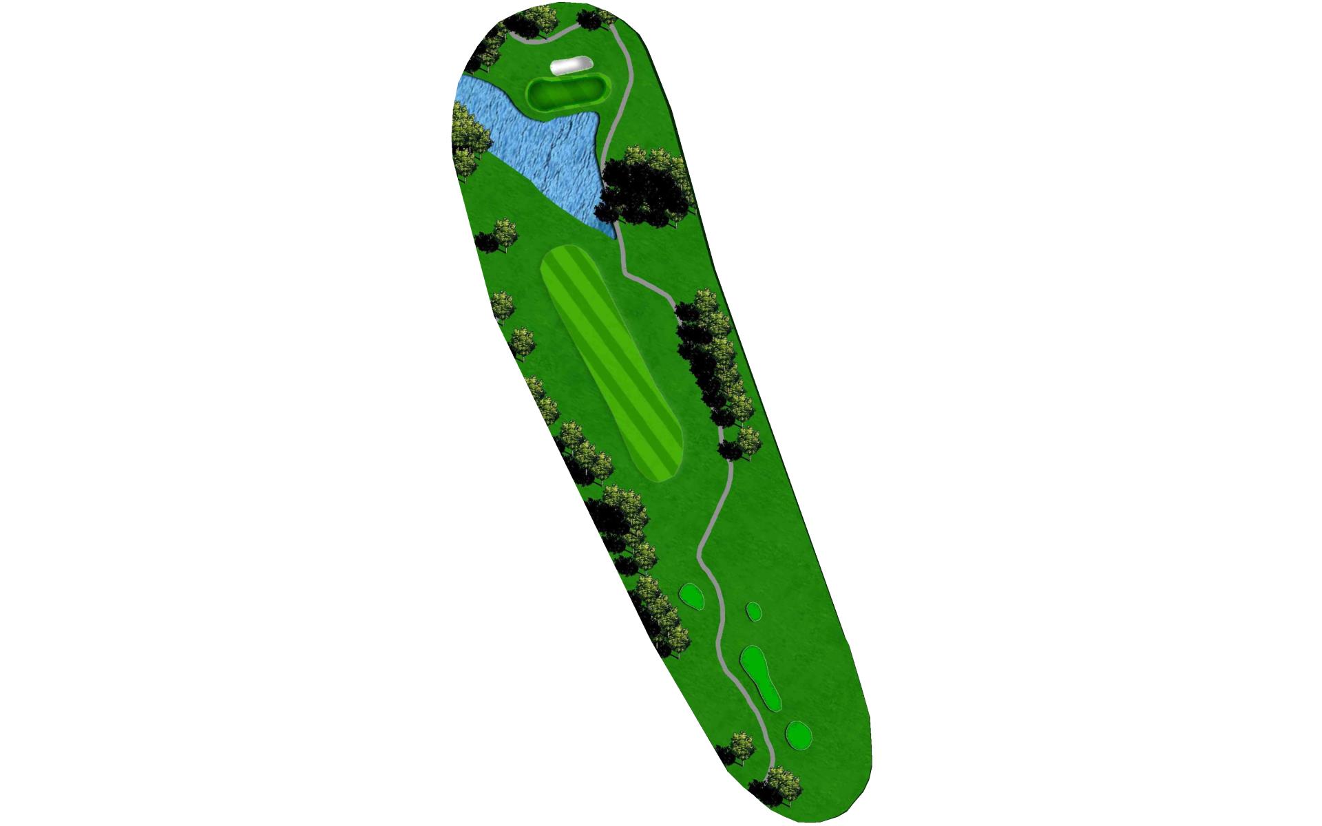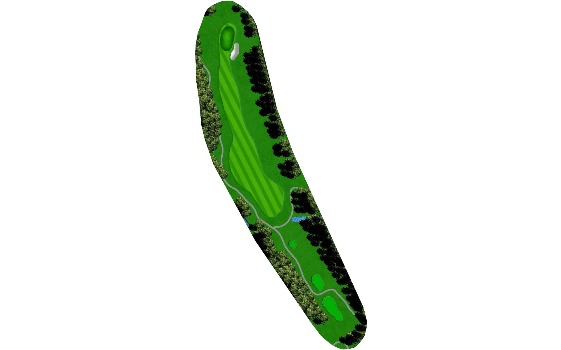 Hole 13 is a par 3 with a narrow green in the front with a large bunker on the right side. For your tee shot play to the center of the green and play for par.