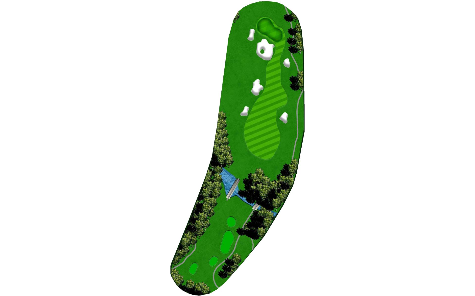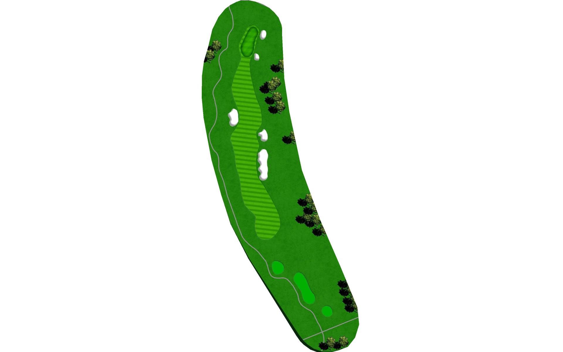 A medium length par 4 that dog legs slightly left. Tee shot should favor the right side of the fairway. A strong tee shot with some draw shape is ideal. The large tree on the left side of the hole will knock any tee shot too far left straight down into the rough. Favor the right side of the green with your approach shot. Any shot that lands left of the center of the green will release left quickly toward the creek. First bounce is typically firm, so play for some release.